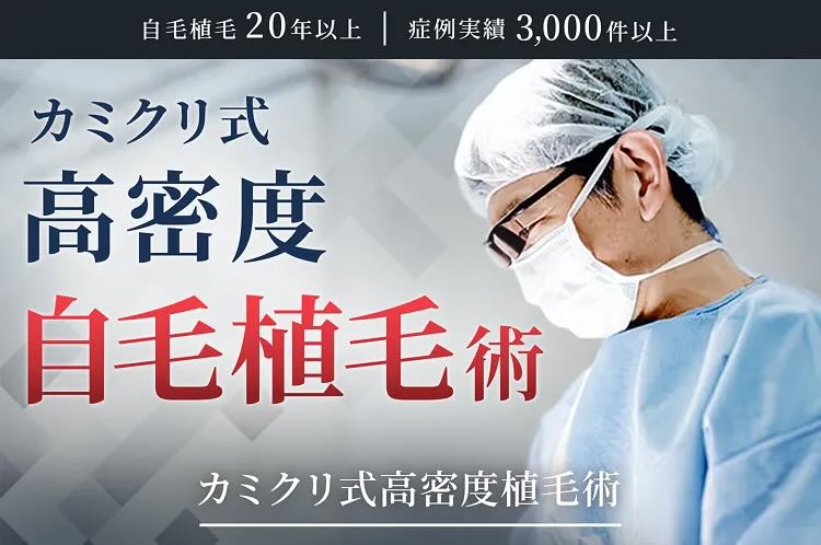 また、自毛植毛手術執刀歴20年以上のベテラン専門医師が開発した「カミクリ式高密度自毛植毛」を魅力的な価格で受けることができます。